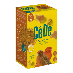 CéDe eivoer Rood is een voedingssupplement ontwikkeld voor kleurkanaries en inlandse vogels die de roodfactor bezitten. Ei-eiwit, een goed opneembaar en optimaal benutbaar bron van dierlijk eiwit, vormt de kern van dit voer. CéDé eivoer Rood is verrijkt met hoogwaardige eiwitten, zowel dierlijke als plantaardige, en voorziet in alle benodigde vitaminen, aminozuren, mineralen en sporenelementen voor een succesvolle kweek. Daarnaast bevordert de toevoeging van essentiële aminozuren een gezonde ruiperiode.